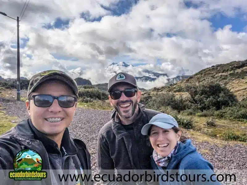 ” I highly recommend a trip with Ecuador Bird Tours. If you are interested in birds and nature at all, it’s a wonderful way to see and experience the wonderful country of Ecuador. We booked this because we were already planning a Galapagos trip and this seemed like something different to try. It was the perfect compliment to the islands! In four days we saw so much – from enjoying the lodge in Quito, down to the cloud forest, then up to the mountains. Eating breakfast while the sun came up over the mountains, watching condors wake up, and seeing bears on the hillside, was an especially amazing morning. I hope to be back one day! – Emma and Mark.